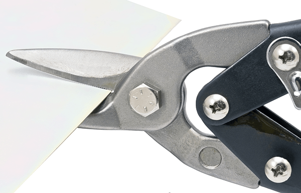 Tin snips are the safest and easiest tool to use when cutting trims. For a cleaner cut, avoid closing the blades at the end of a stroke.